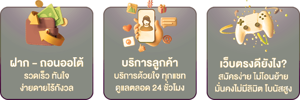 ตอบ : มีระบบฝาก-ถอนอัตโนมัติรวดเร็วภายใน 30 วินาที รองรับทุกธนาคาร และ True Money Wallet ตลอด 24 ชั่วโมง
